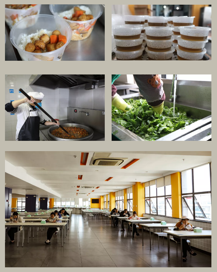 细心的工作人员提前制作大批办公遮挡板,,,为员工安心办公设立一道安全屏障,,隔离病毒却不能隔离同事情谊,,,,干净整洁的办公室比往日安静许多,,响起的是敲击键盘的哒哒声,,,,少了往日亲切交谈、、你来我往的沟通——疫情背景下,,,话虽少但心却更近了。。 复工第三关:用餐防护 食堂工作人员自己全面做好防控措施的同时,,,严把原材料关,,保证饭菜制作全过程安全、、卫生。。。。午餐采取各楼层配餐方式,,谢绝外部人员进入用餐、、、杜绝外卖送餐。。在餐厅用餐者需二次量体温,,隔位入座用餐。。。 防控在前,,,安全复产