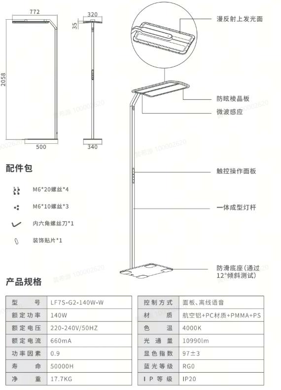 雀魂炯炯落地灯F7(电源内置)产品简介