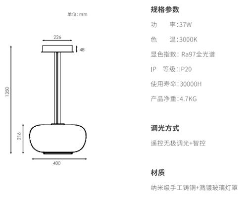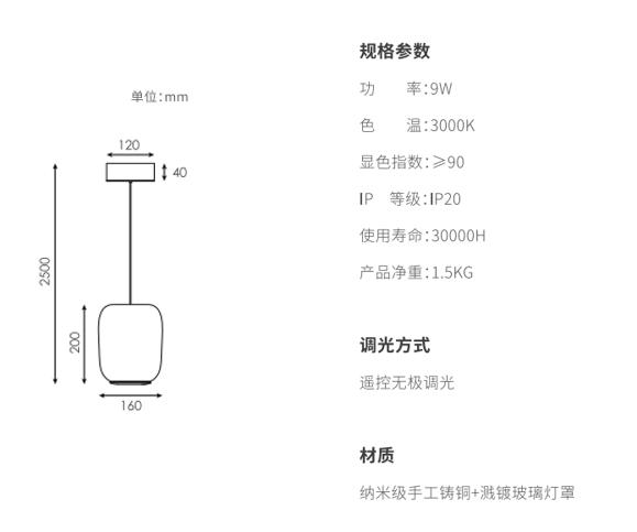 产品简介:手工吹制高硼硅玻璃,,,,圆润柔和;在内部的上路光透过玫瑰金色网格铸铜件投射出类似烛火的效果,,,,在空间里显得更加灵动,,外层玻璃采用溅镀金属质感,,自下而上渐消,,,同时镜面镀层折射环境光线,,,,使产品更加轻盈通透不压抑,,,下路光采用直下光,,满足1.5米圆桌面充足照明。。。同时设计有防眩格栅,,桌面边缘的视线高度不会有直接光线照射到,,体验舒适。。